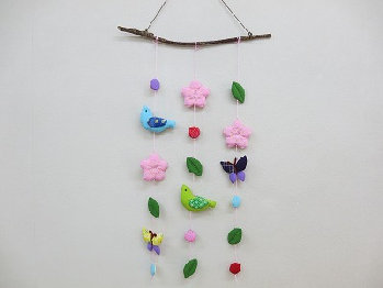 春を呼び込む、可愛いつるし飾りです。鳥、蝶々、桜がゆらゆら、眺めて楽しめます。