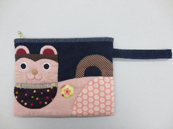 かわいい狛犬アップリケのフラットポーチです。ハンド付きが便利です。