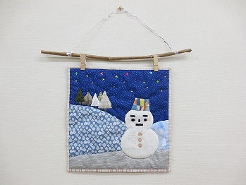 雪山にたたずむ雪だるま、晴天の星空に包まれて冬を楽しいんでいます。
