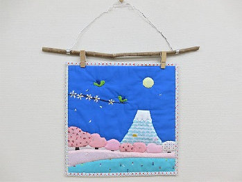春の景色、富士山に桜風吹のタペストリー。