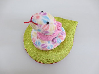 干支・巳 かわいいおしゃれ巳ちゃんです。金襴の座布団に座って幸運を願っています。