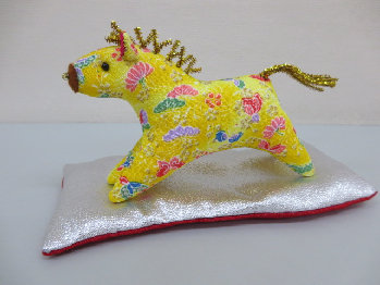 干支・午 和柄ちりめんで、元気に走る午に仕上げました。招福来福の開運午です。